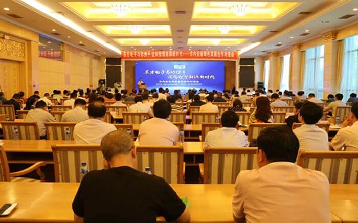 市工业和信息化局局长姜开主持会议,丁总、海尔马总作报告