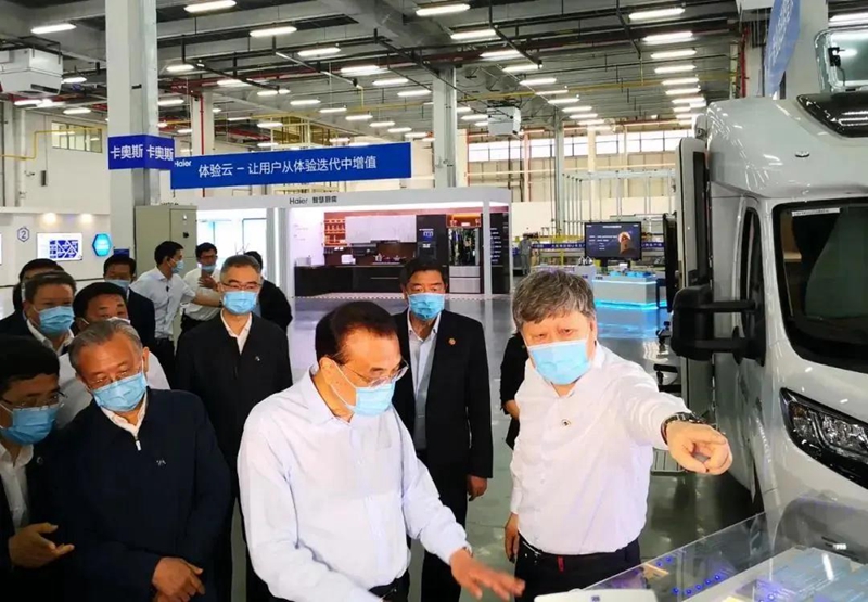 ▲6月2日,李克强总理到海尔视察,听到了海尔工业互联网平台COSMOPLAT的介绍。该平台的综合能源管理部分由北京极速定位科技有限公司提供。