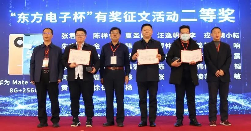 中国电力传媒总经理、党委副书记郝兴国,国网卓越科技总经理孔志国,中国电工技术学会控制与保护专委会秘书长韩万林为二等奖获得者颁奖