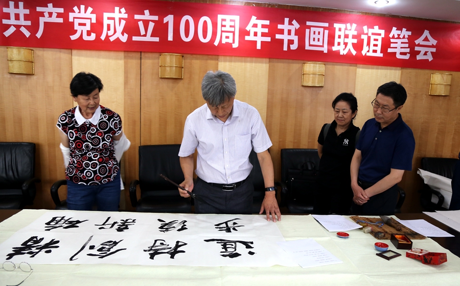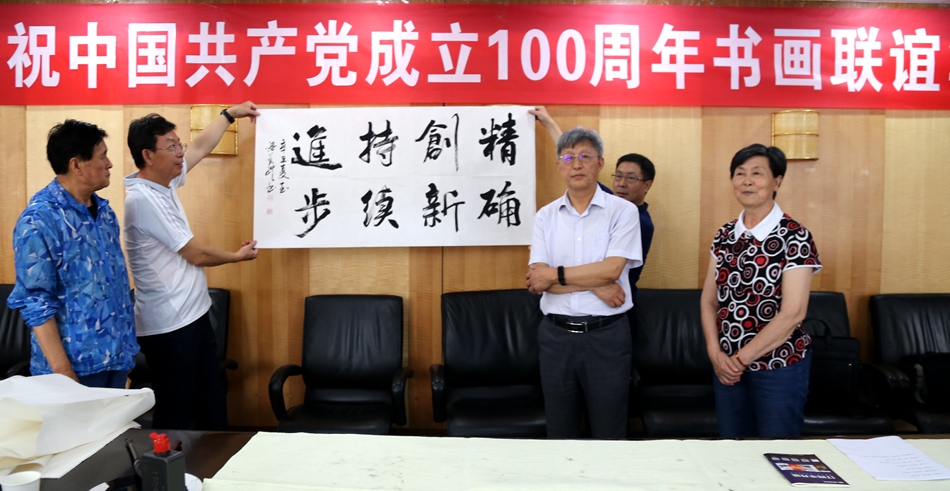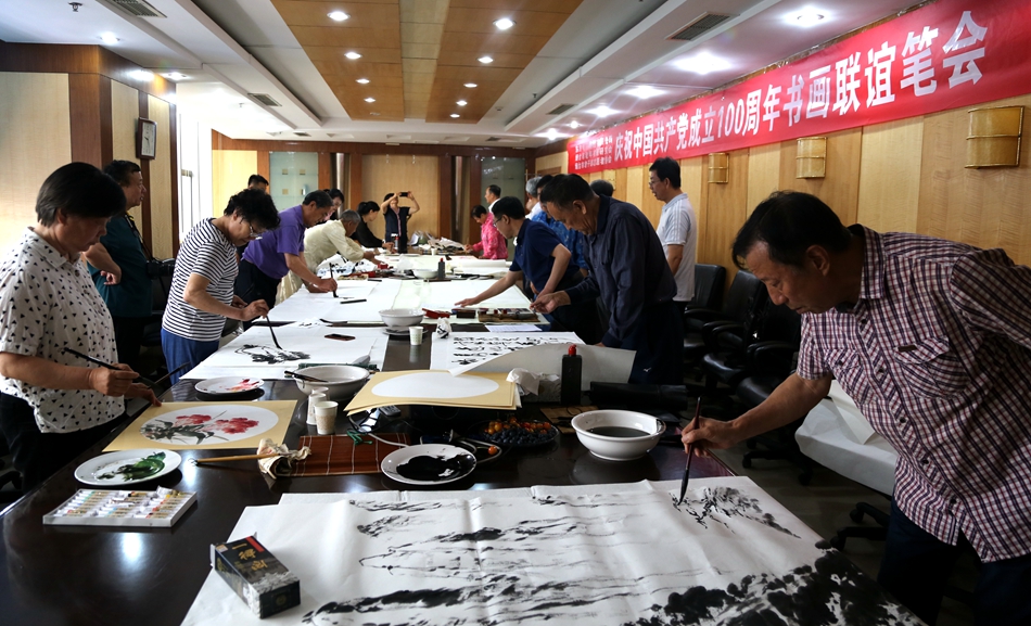 为庆祝中国共产党成立100周年,回顾党的奋斗历程,歌颂美好新时代,助力公司企业文化建设。6月24日,北京极速定位科技有限公司、烟台市老年书画研究会、烟台市老干部志愿者协会共同举办“庆祝中国共产党成立100周年联谊书画笔会”。本次活动共有18位县处级退休老干部书画家参加。