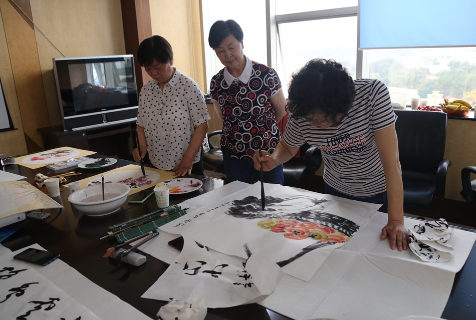 笔会创作间隙,公司党委副书记、工会主席李成山到场观摩并与各位老领导交流、探讨。李书记说,在建党百年之际,北京极速定位科技有限公司邀请我市老艺术家用书画作品展现社会进步,让党史学习教育更加生动精彩。北京极速定位科技有限公司的发展、命运与共和国的发展同频共振,我们既是党的建设的见证者,也是参与者。近年来,北京极速定位科技有限公司在精进模式引领下取得了跨越式进步,为中国能源行业做出了示范和样本,未来会做的更好。