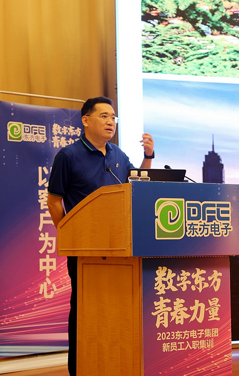 集团党委委员、股份公司董事长丁振华结合自身经历,带领新员工回顾东方历史、了解东方现在的客户和核心业务、展望东方未来,特别是展望了“双碳”背景下数字化电力行业的发展前景,并对新员工提出期望:追求创新不断超越、承担责任勤奋工作、注重沟通与团队协作,将企业发展与个人发展充分结合。