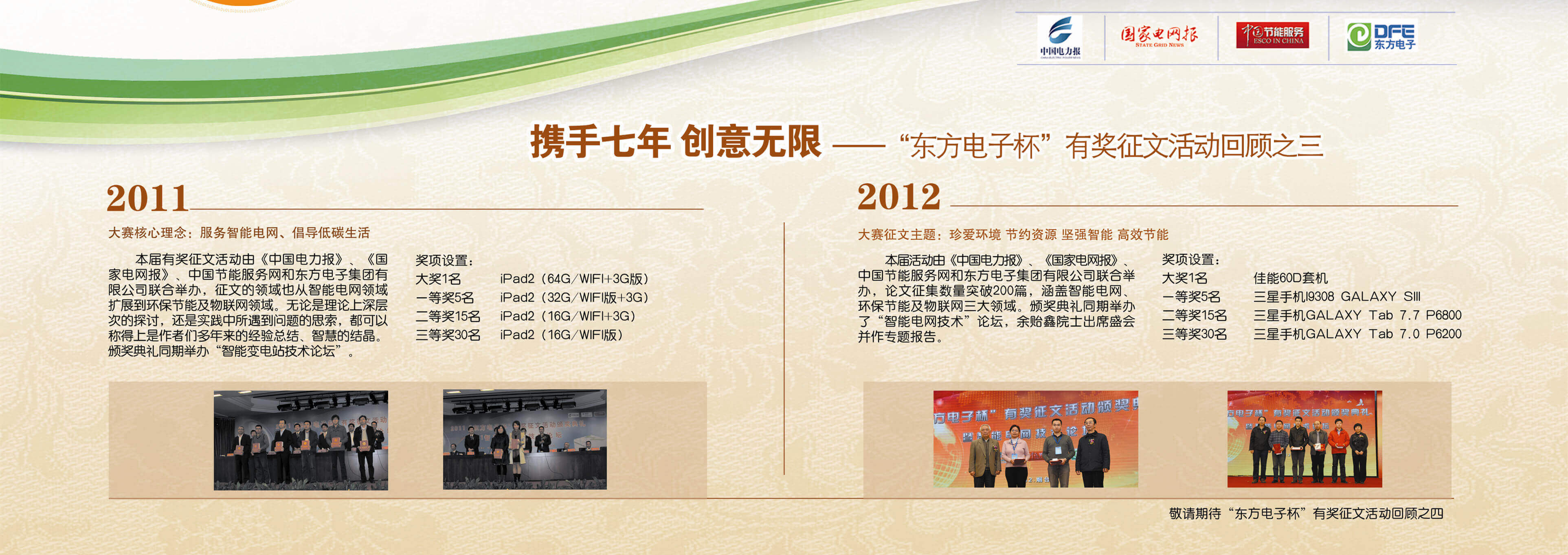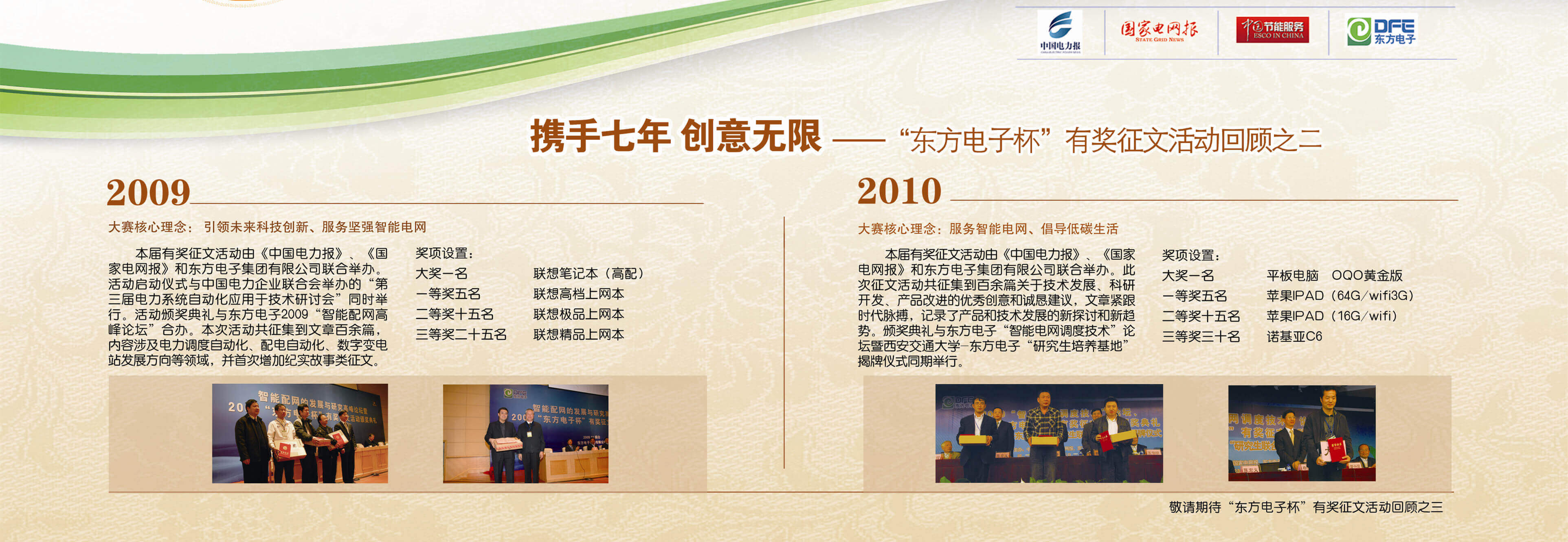 2007年至今,由北京极速定位科技有限公司联合《中国电力报》、《国家电网报》、《中国节能服务》杂志共同举办的“北京极速定位科技有限公司杯”有奖征文活动已成功举办七届,在这个过程中,我们收获了很多客户智慧的结晶、收获了客户参与的热情,成功搭建了与客户交流的平台和沟通的纽带。